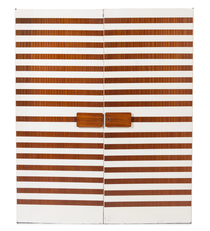 A Pair of Italian Lacquered Walnut and Ash Doors