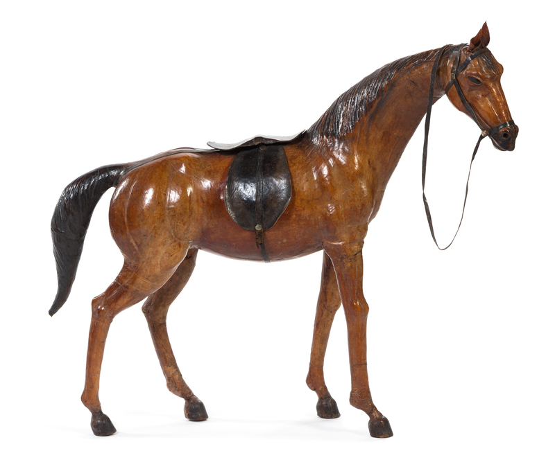 A Tooled and Painted Leather Model of a Horse