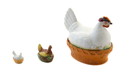 in the form of a hen seated on a nest, together with two similar boxes.