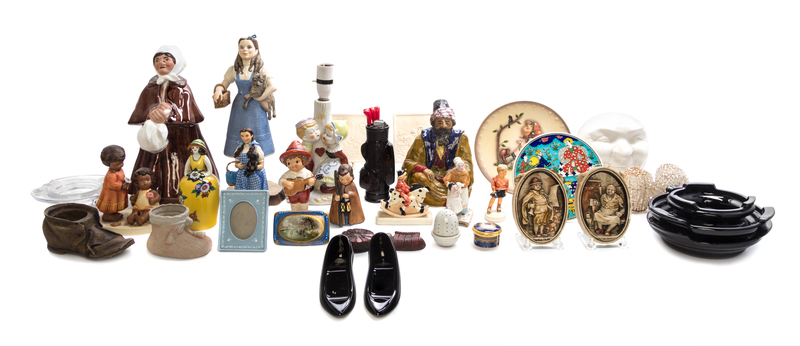 primarily porcelain, including a figural lamp and others.