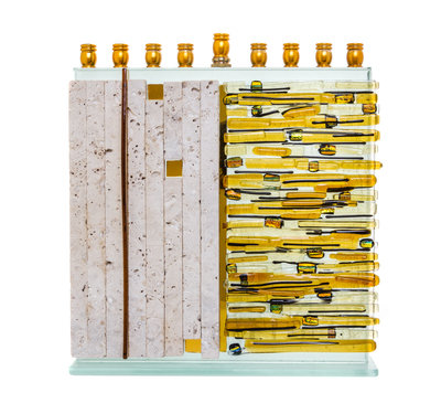 brass, glass, stone