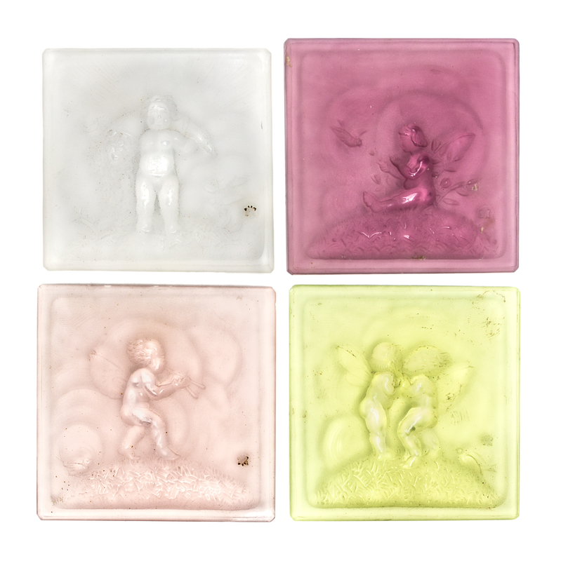 each molded in relief with winged putti, with intaglio molded butterfly marks.