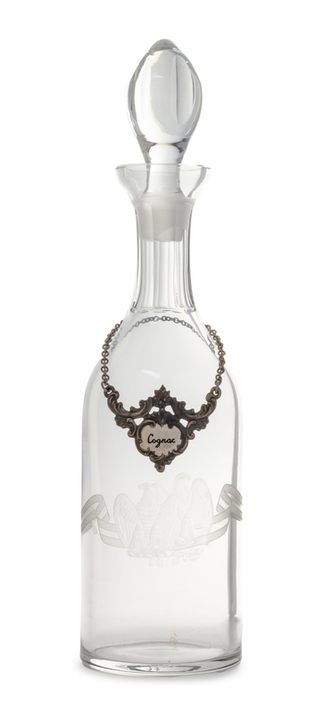 decorated with two eagles on a banner, with an enameled liquor tag.