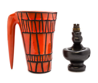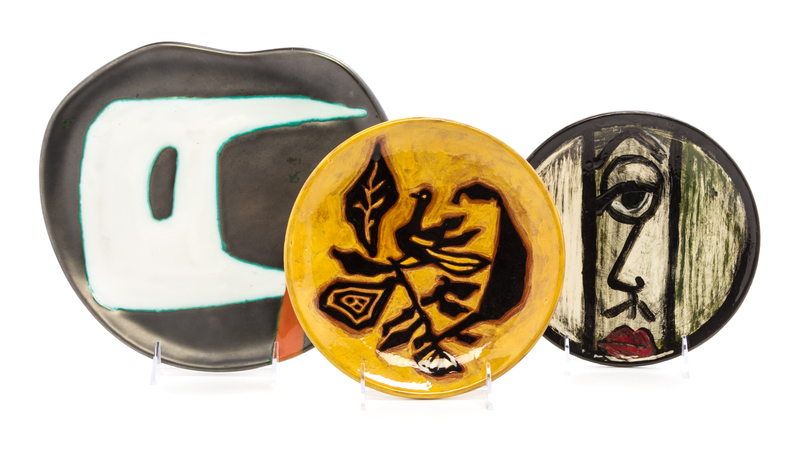 comprising a Jean Lurcat plate, a pitcher, a lamp base and two additional plates.