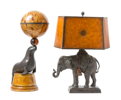 one depicting a seal with a ball, the other an elephant.