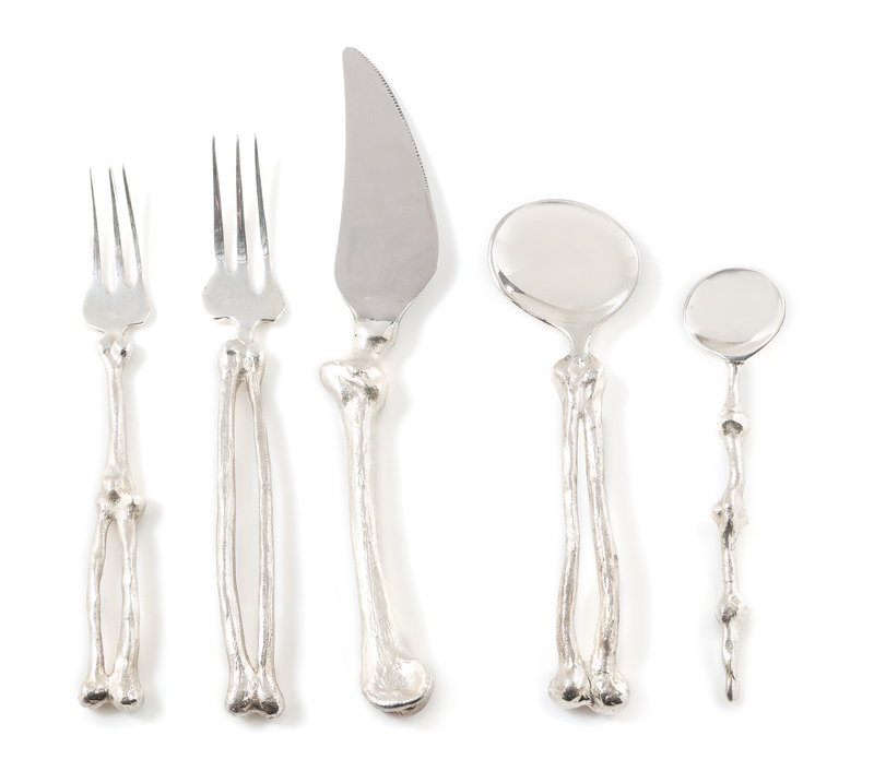 each cast with a bone motif, comprising:4 dinner forks4 salad forks4 knives4 teaspoons4 tablespoons