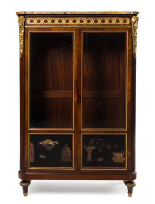 A Louis XVI Style Gilt Bronze and Coromandel Lacquer Mounted Mahogany Vitrine Cabinet