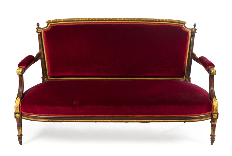 A Louis XVI Style Gilt Bronze Mounted Mahogany Salon Suite