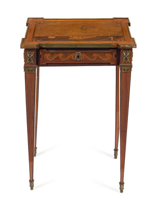 A Louis XVI Gilt Bronze Mounted Marquetry Table a Ecrire