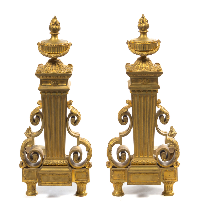 A Pair of Louis XVI Style Gilt Bronze Chenets