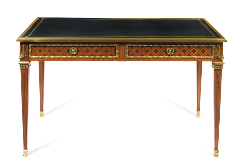 A Louis XVI Style Gilt Bronze Mounted Parquetry Bureau Plat