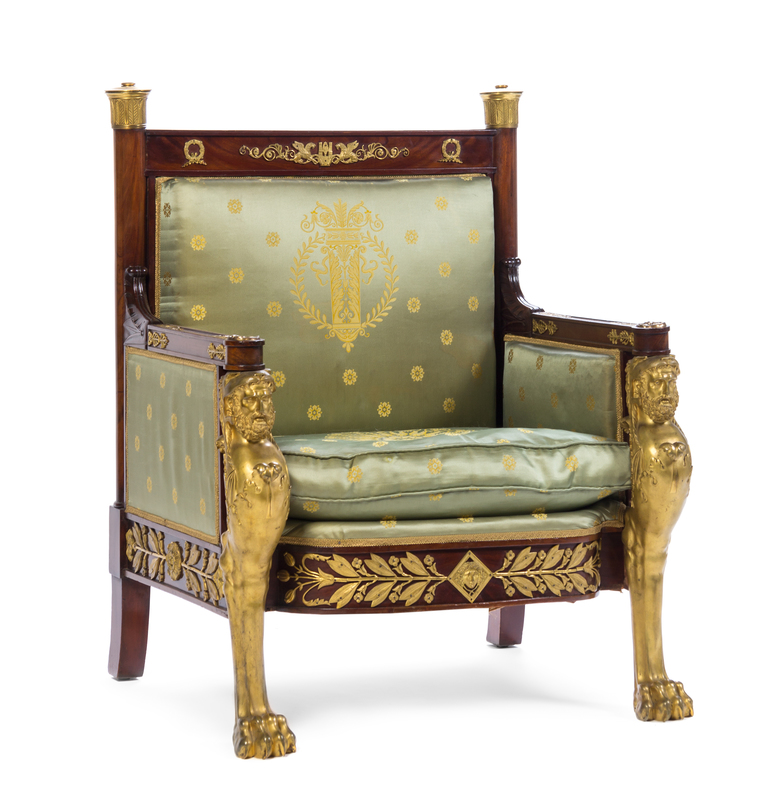 An Empire Gilt Bronze Mounted Mahogany Bergere
