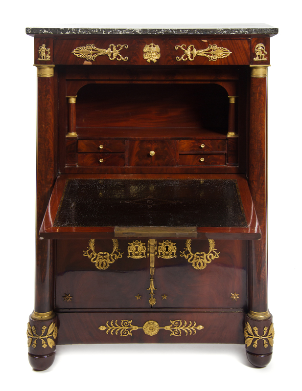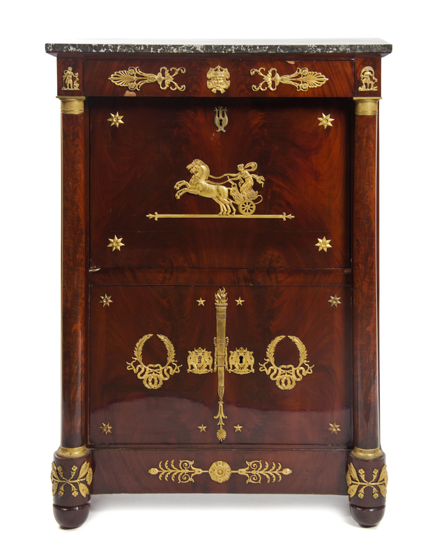 An Empire Style Gilt Bronze Mounted Mahogany Secretaire a Abattant