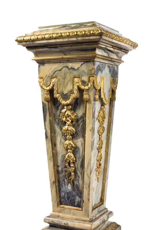 A Pair of Continental Gilt Bronze Mounted Marble Pedestals
