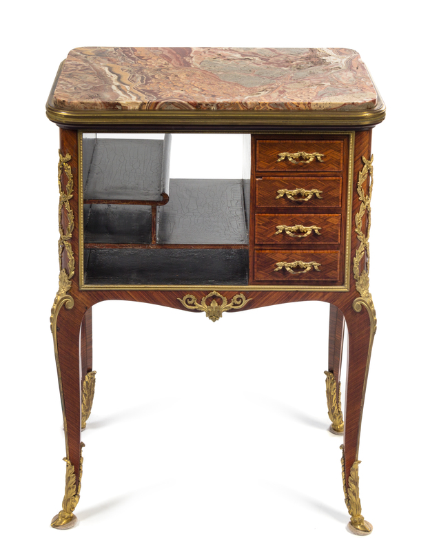 A Louis XV Style Gilt Bronze Mounted Kingwood and Parquetry Stationery Table