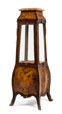 A Louis XV Style Gilt Bronze Mounted Marquetry Vitrine