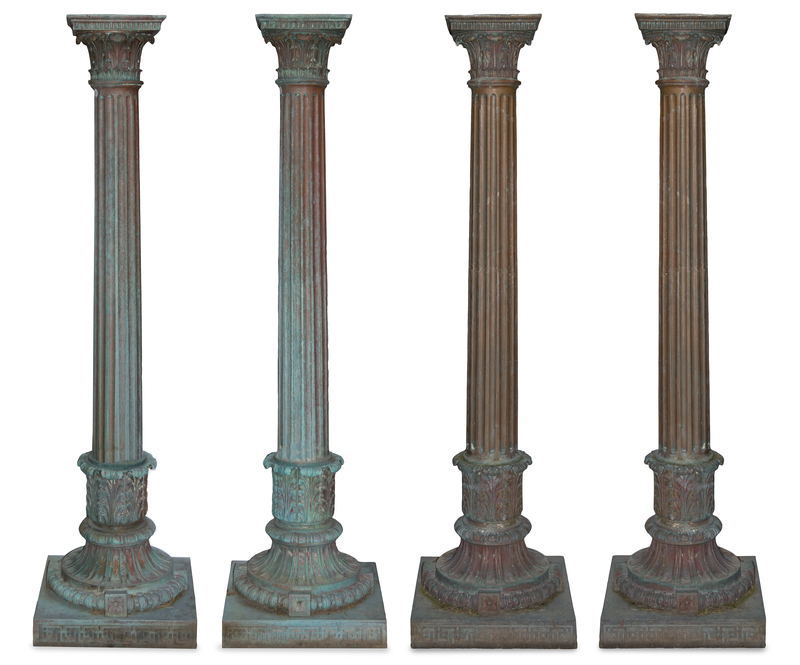 each with a Corinthian capital, an acanthus decorated foot and a rectangular base with a Greek key border.