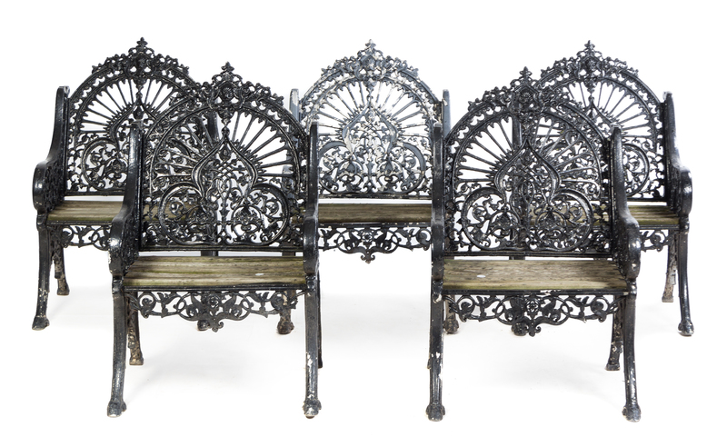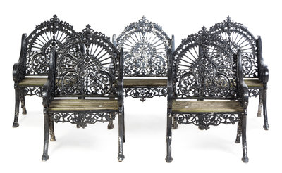 A Set of Five Victorian Painted Iron Garden Chairs