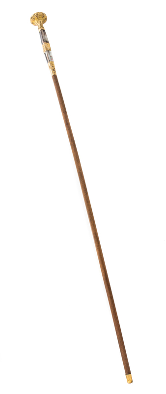 A Gilt Metal and Mother-of-Pearl Mounted Walking Stick