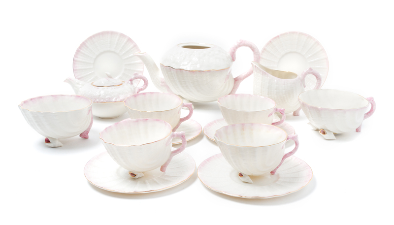comprising a teapot, a creamer, a covered sugar and six cups with saucers.