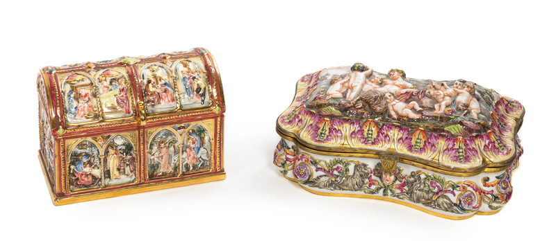 Two Capo di Monte Porcelain Table Caskets