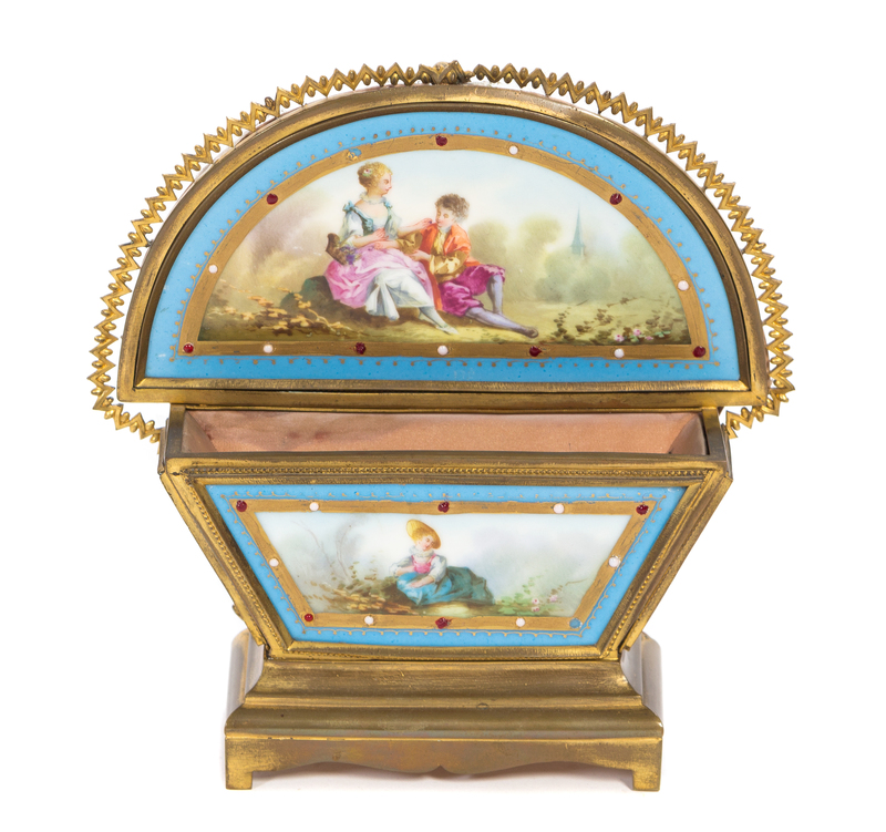 A Pair of Sevres Style Porcelain Mounted Gilt Metal Pin Caddies