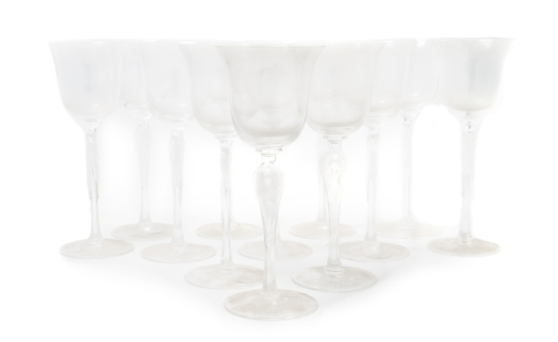 A Set of Twelve Igor Carl Faberge Frosted Glass Wine Stems