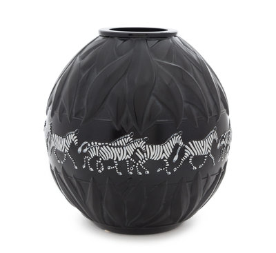 A Lalique Black Glass Tanzania Vase