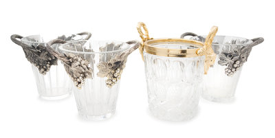 comprising a set of three with pewter mounts and one with gilt metal mounts.