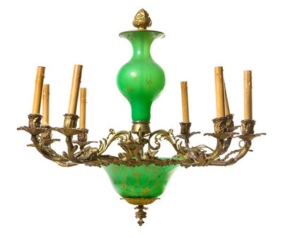 A Continental Opaline Glass Mounted Gilt Bronze Eight-Light Chandelier