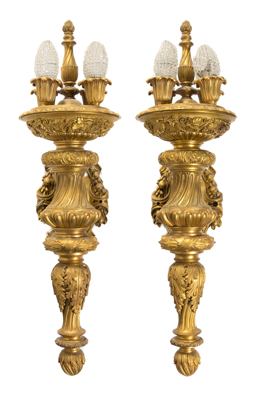 A Pair of Continental Gilt Bronze Four-Light Sconces