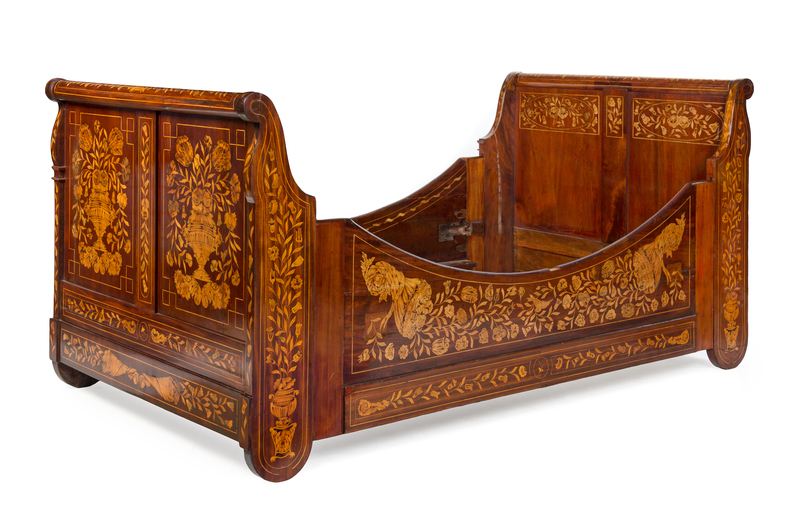 inlaid throughout with cornucopias, urns issuing flowers, birds and foliate scrolls.