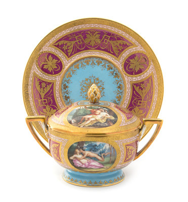 A Royal Vienna Porcelain Two-Handled Cup, Cover and Saucer