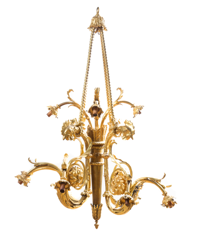 A Neoclassical Gilt Bronze Twelve-Light Chandelier