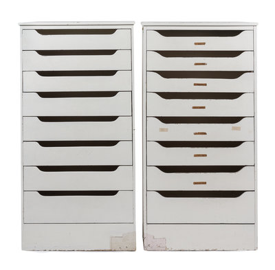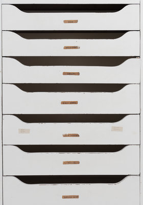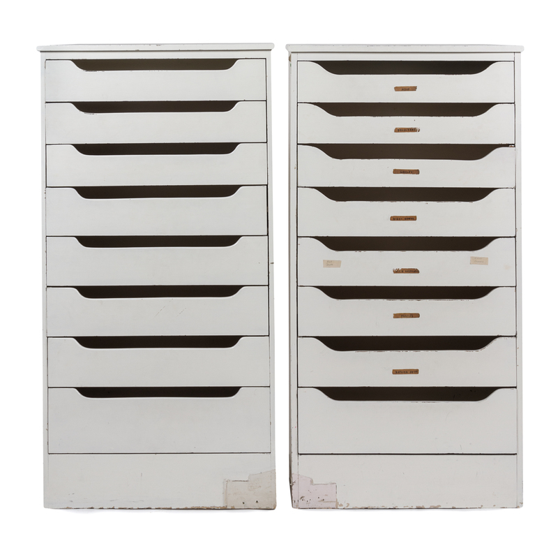 both with eight pull-out compartments, one with paper labels handwritten by Rose Kennedy.
