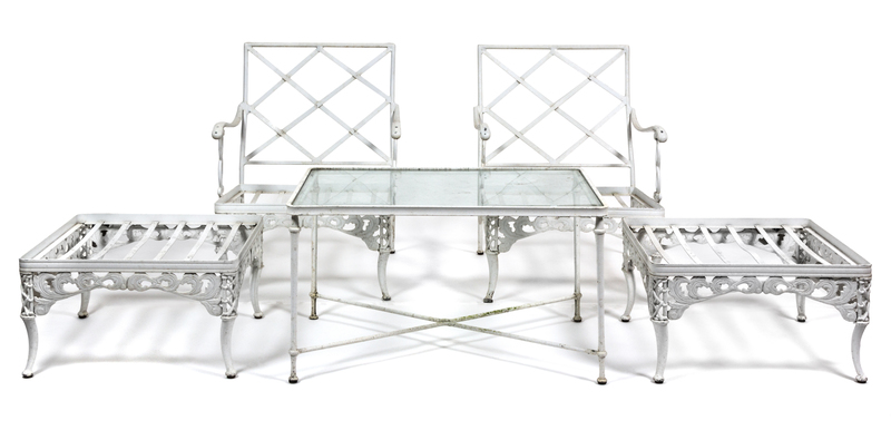 A Suite of White Painted Aluminum Garden Furniture