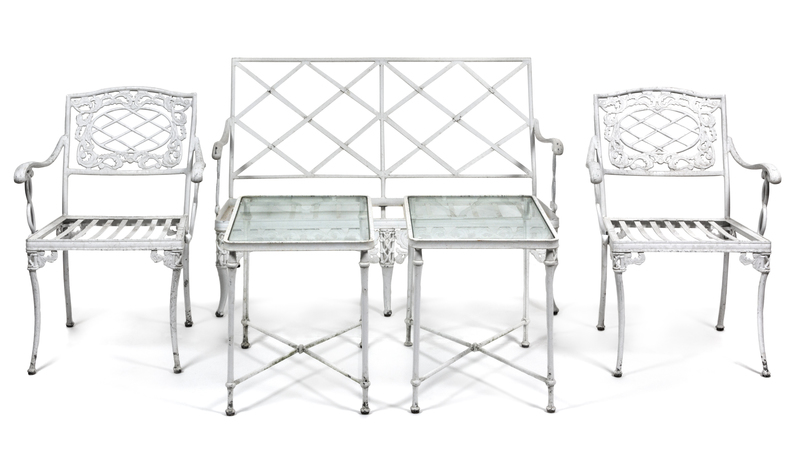 A Suite of White Painted Aluminum Garden Furniture