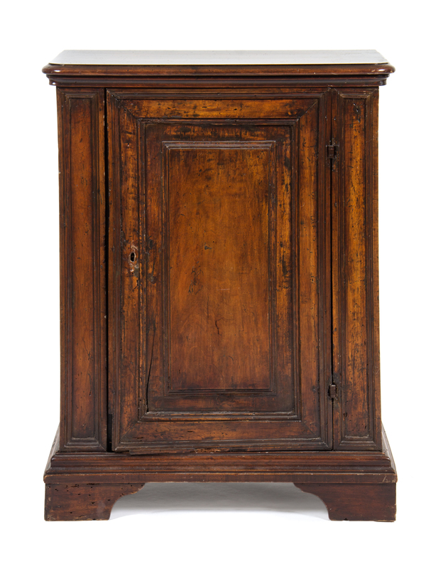 having a later rectangular top with rounded corners over a single door, raised on a molded base with bracket feet. This lot was supplied to the home by Addison Mizner for the original owner, Rodman Wanamaker, and remained in the home during the duration of the Kennedy years.