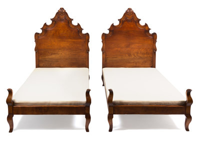 A Pair of Venetian Style Walnut Twin Beds