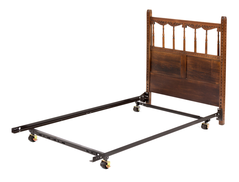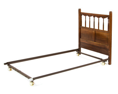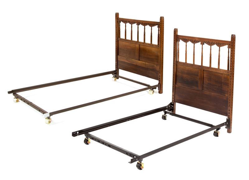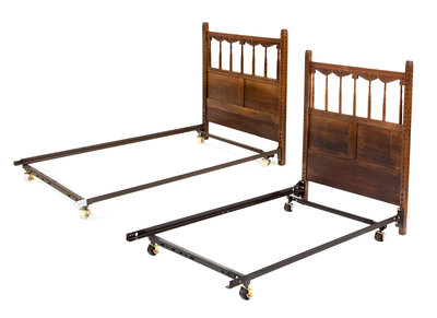 each spindled headboard mounted to a later metal frame. This lot was supplied to the home by Addison Mizner for the original owner, Rodman Wanamaker, and remained in the home during the duration of the Kennedy years. This set was the framework for Robert (Bobby) Kennedy and his brother, Edward (Teddy) Kennedys beds in their shared bedroom at the Winter White House estate in Palm Beach.