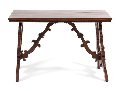 having a rectangular top raised on twin supports joined by stretchers. This lot was supplied to the home by Addison Mizner for the original owner, Rodman Wanamaker, and remained in the home during the duration of the Kennedy years.