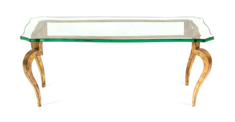 having a shaped rectangular top with canted corners, raised on tapering cabriole legs.