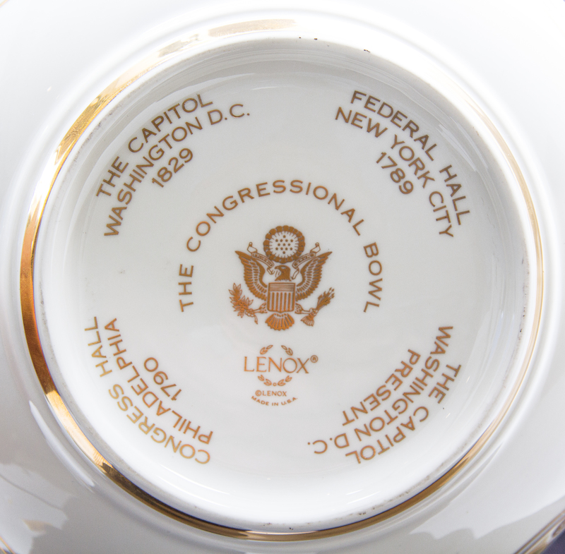 The Congressional Bowl, depicting views of Federal Hall, New York City, 1789; Congressional Hall, Philadelphia, 1790; The Capitol Building, Washington, 1829 and The Capitol Building, Washington, at present.