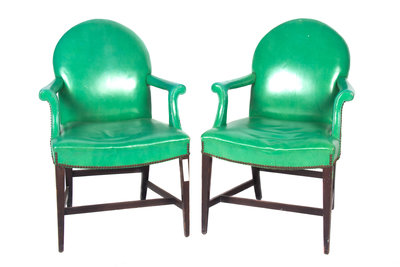 each with a domed padded back, padded arms and trapezoidal seat with nail head decoration. These chairs were used in one of the second floor guest bedrooms of the Winter White House.