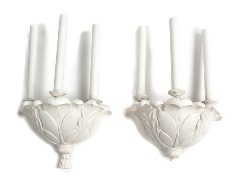 Two Pairs of White Painted Three-Light Wall Lights