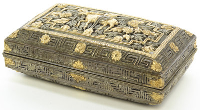 A Southeast Asian Silvered and Gilt Metal Decorative Box
