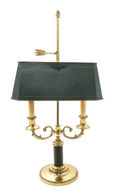 An Empire Style Gilt and Green Painted Metal Bouillotte Lamp