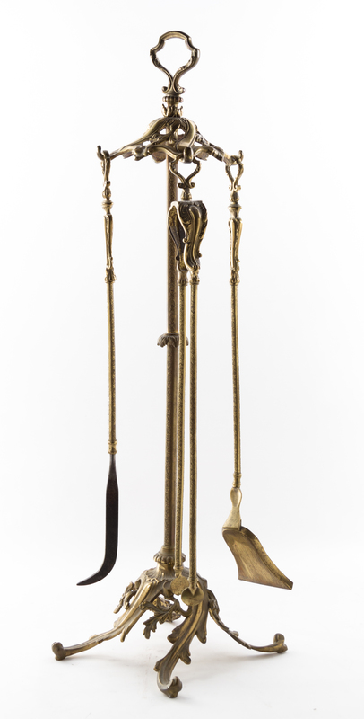 comprising chenets and a set of tools on stand.