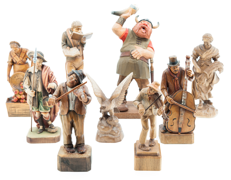 comprising three musicians, a woman with wheat and one with apples, a man reading a book, a viking, a soldier and an eagle.