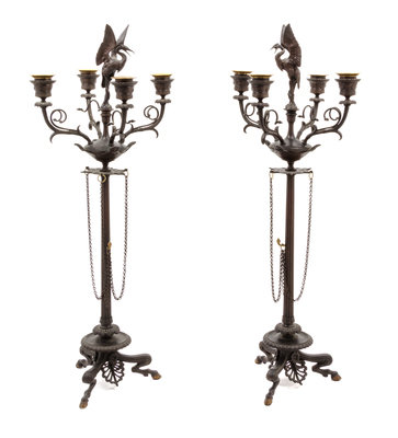 A Pair of Neoclassical Style Cast Metal Four-Light Candelabra